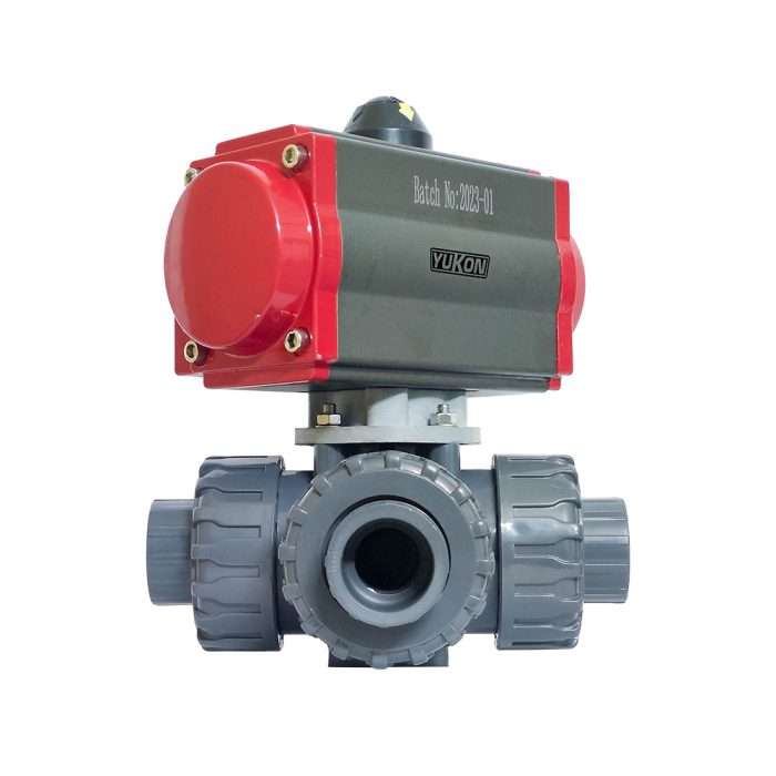 Pneumatic Actuator Operated PVC 3-Way True Union Ball Valve