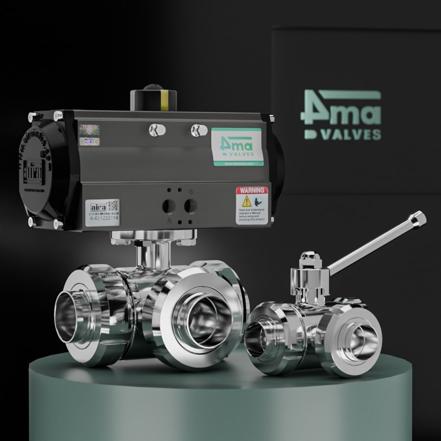 3 Way Sanitary Ball Valve SMS Union End